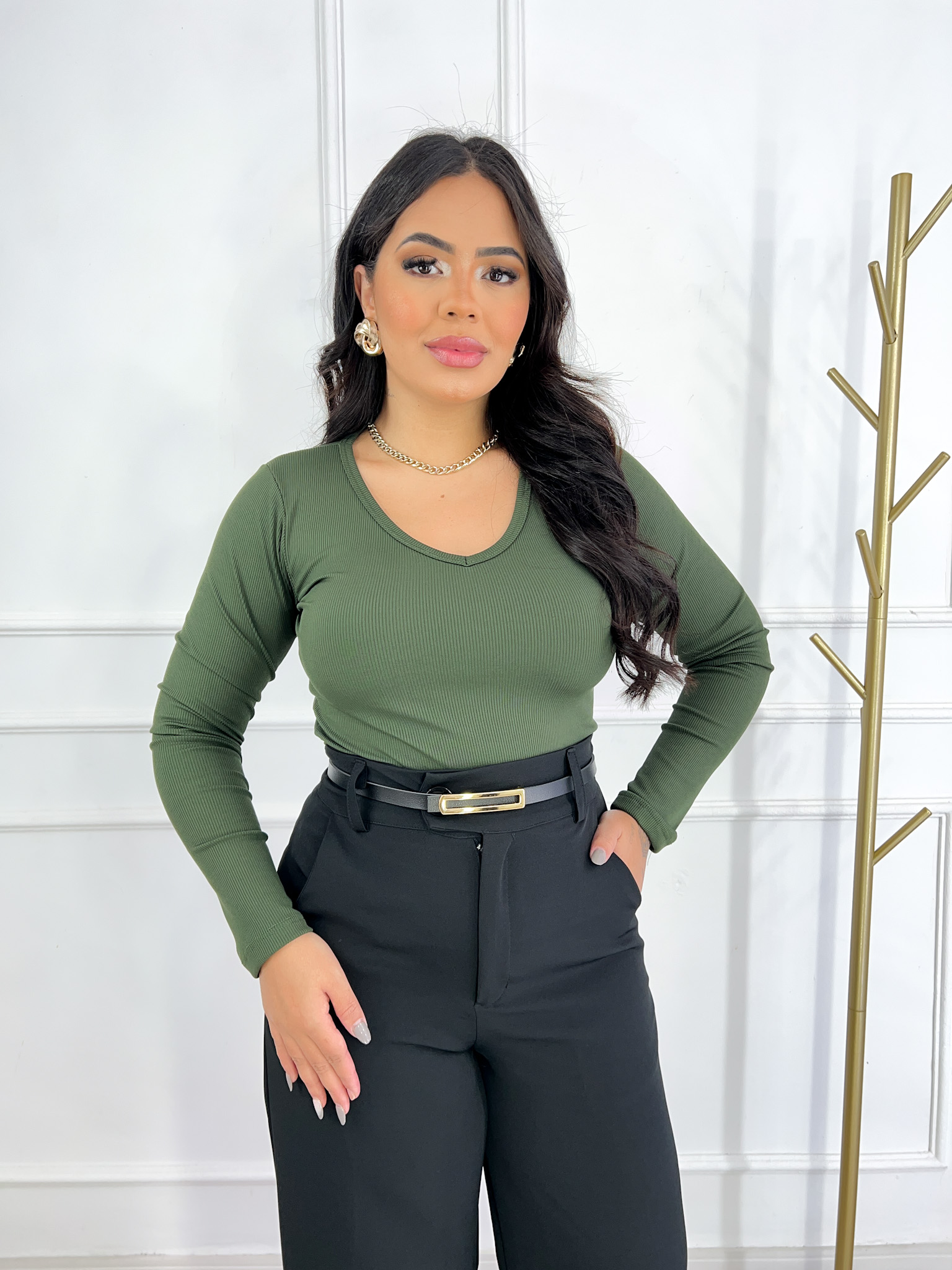 Vista-se com a Blusa Feminina Canelado Gola V Manga Longa Lana e aproveite o conforto e o estilo em todos os momentos!