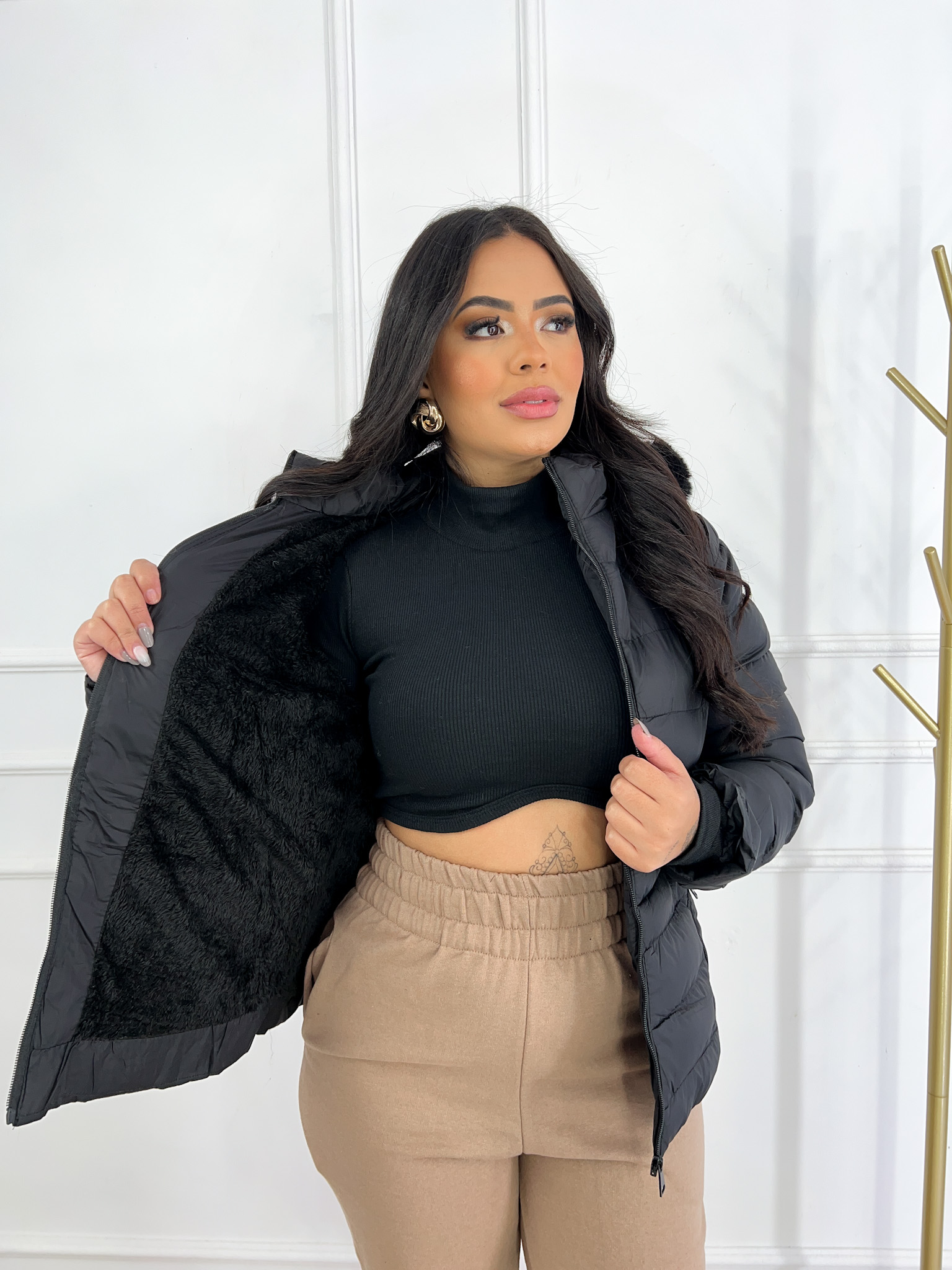 É a peça chave para o seu guarda-roupa! Versátil e estiloso, ele te permite criar looks incríveis para qualquer ocasião. A gola alta garante um toque de sofisticação e elegância.